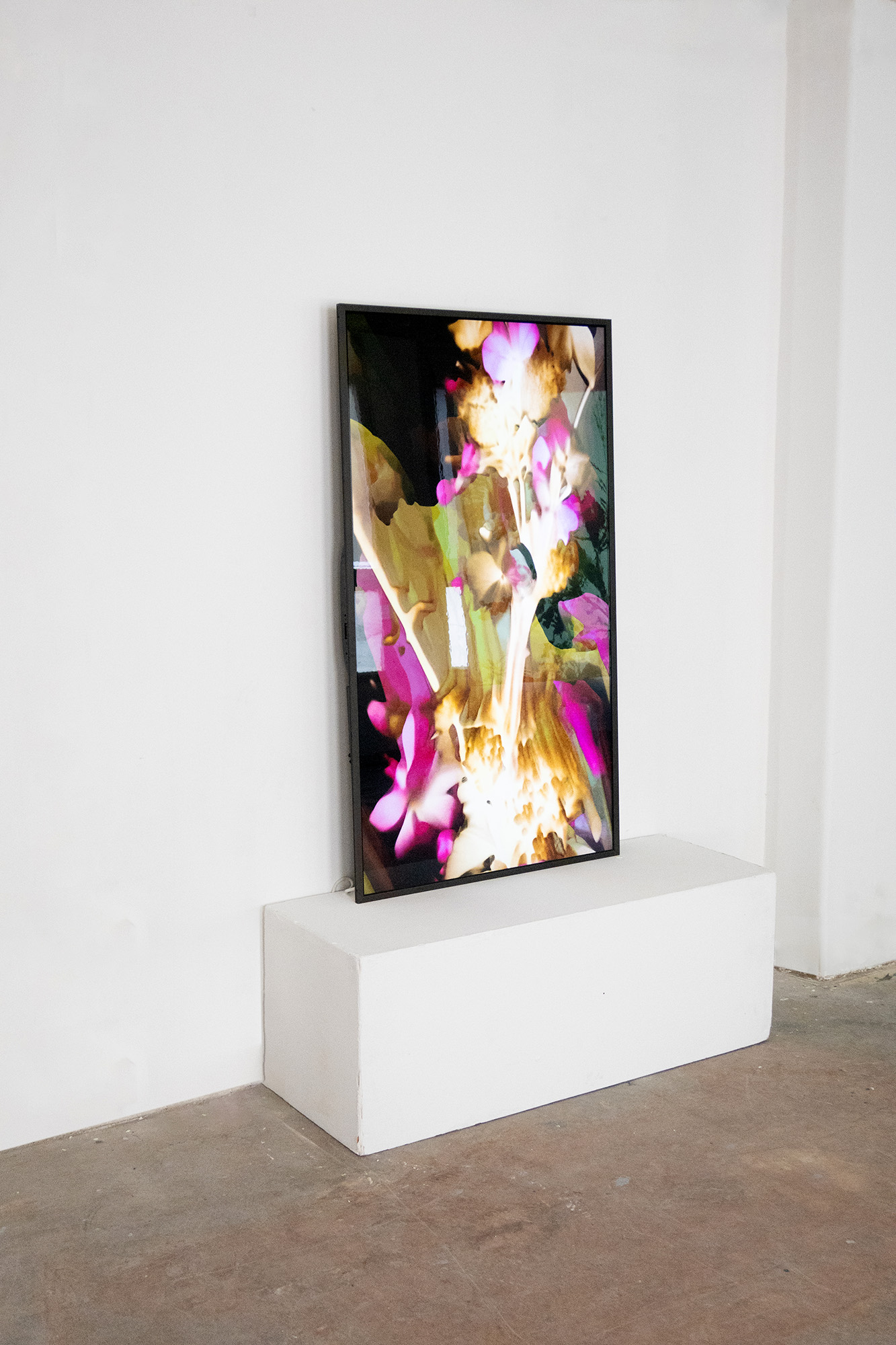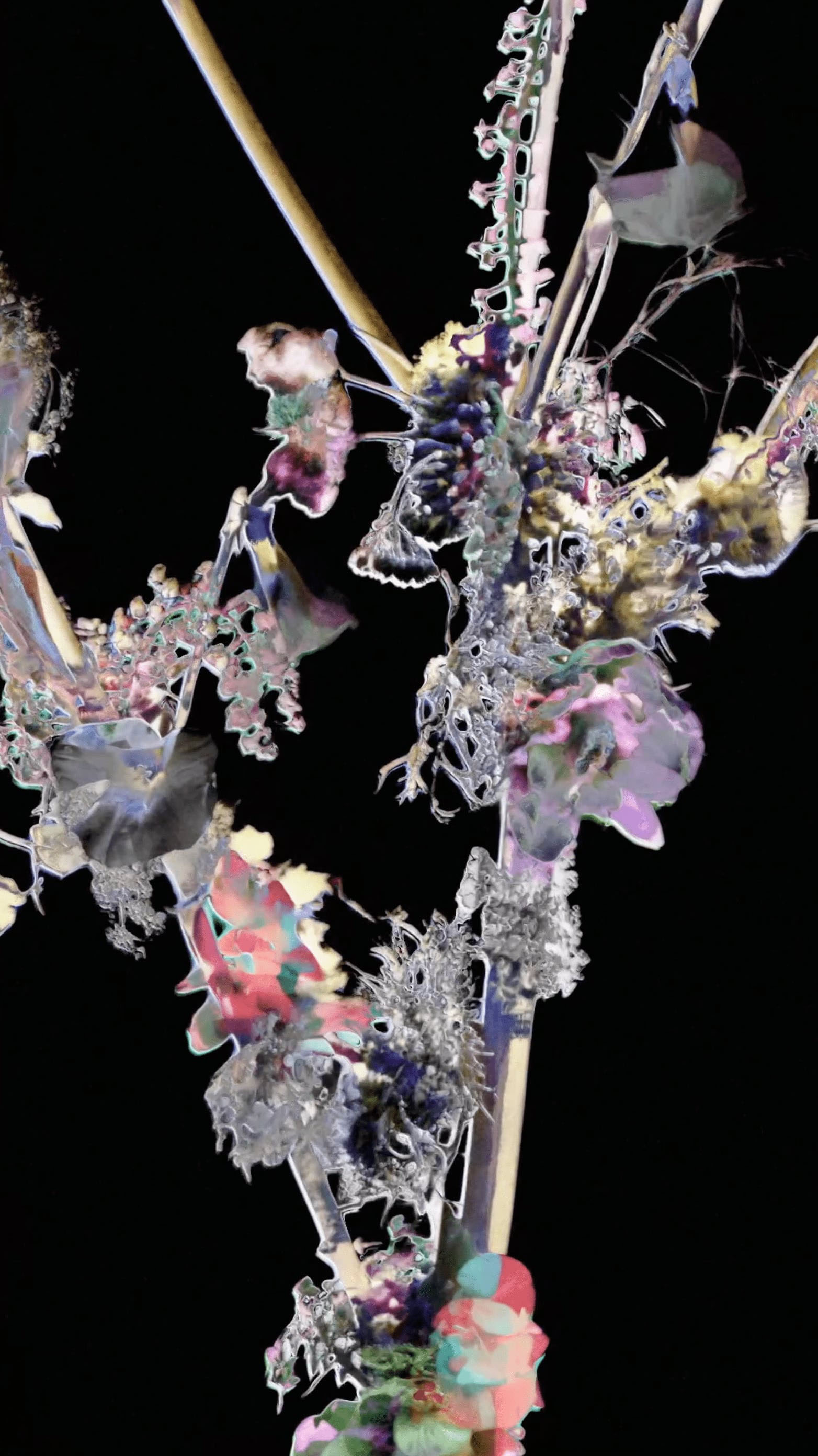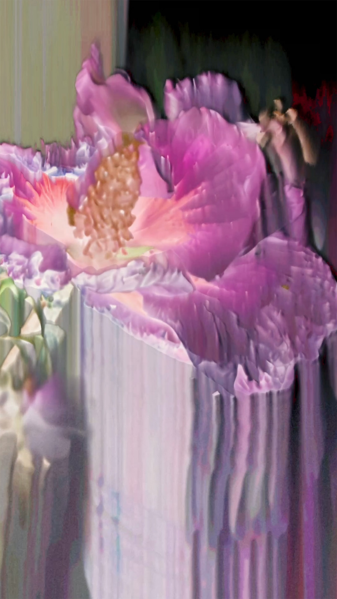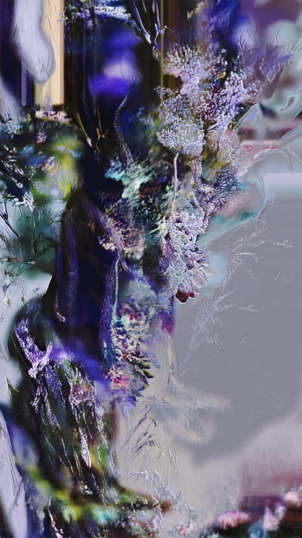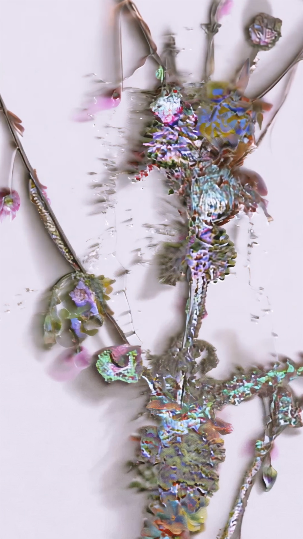 Like fragile and ephemeral pieces, these trees question our relationship with the environment, the act of gathering, and the experience of composition.By integrating videos of flowering trees, distorted by artificial intelligence tools that generate movements, the artist amplifies our perception of shapes, textures and colors. In so doing, she explores the infinite plastic potential of nature. Through these digital deformations, Minh Lê Boutin translates poetic sensations, invisible and immaterial, evoking the beauty of organic movements.